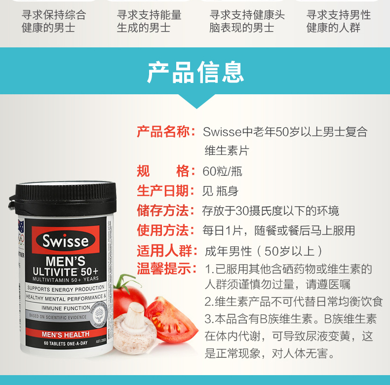 • 【澳洲仓】【特价】Swisse 男士 50+ 复合维生素 90粒