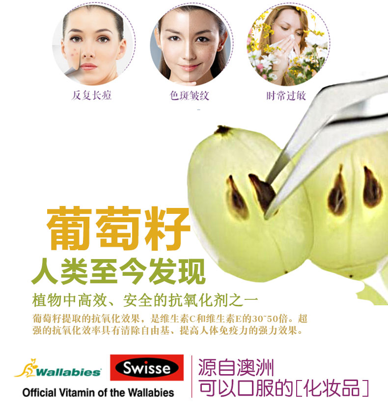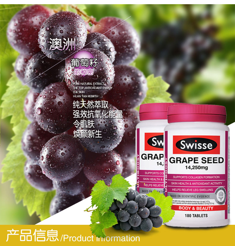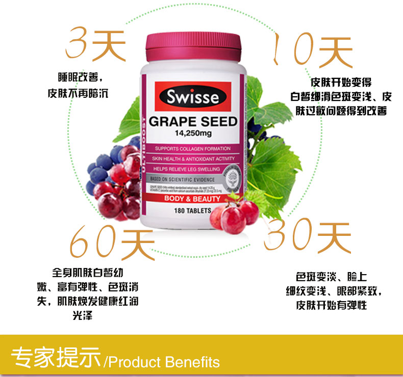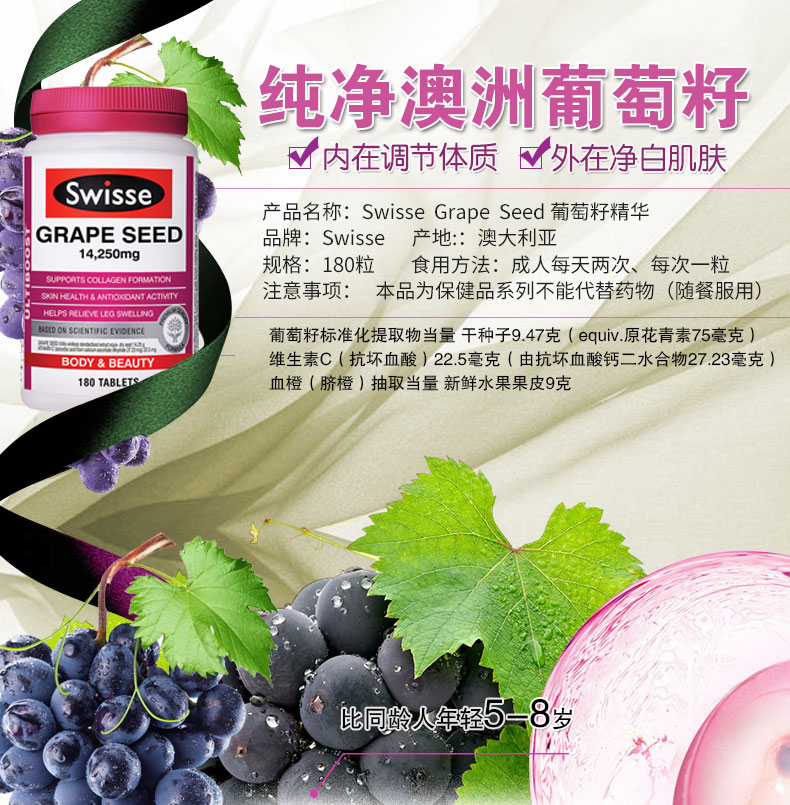 • 【澳洲仓】Swisse Grape Seed 葡萄籽180粒 美白淡斑美容养颜