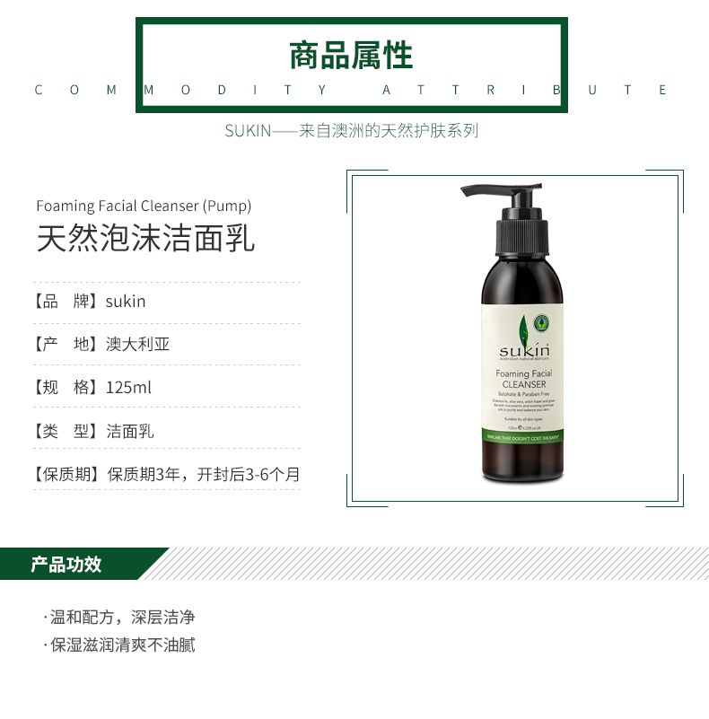 • 【澳洲仓】SUKIN 纯天然乳状洗面奶 CREAM CLEANSER 125ml