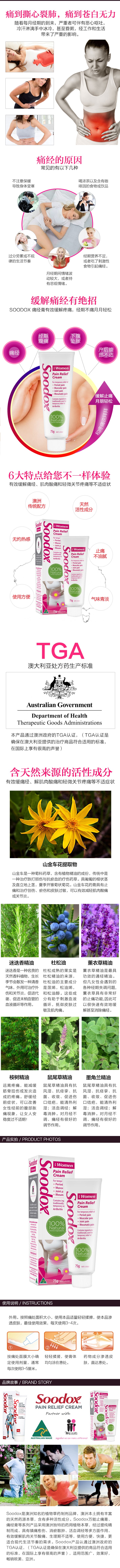 • 【澳洲仓】【特价】SOODOX PAIN RELIEF CREAM FOR WOMEN   痛经膏 75g (18年3月)