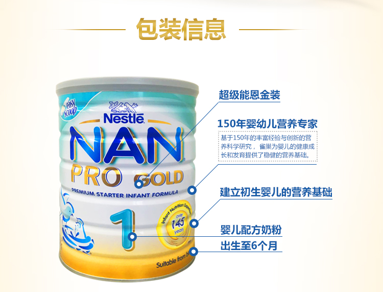 • 【澳洲仓】Nestle雀巢能恩NAN Pro金盾1段婴儿奶粉 800g