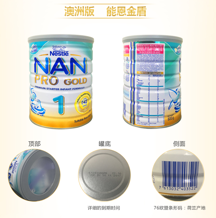【澳洲仓】Nestle雀巢能恩NAN Pro金盾1段婴儿奶粉 800g