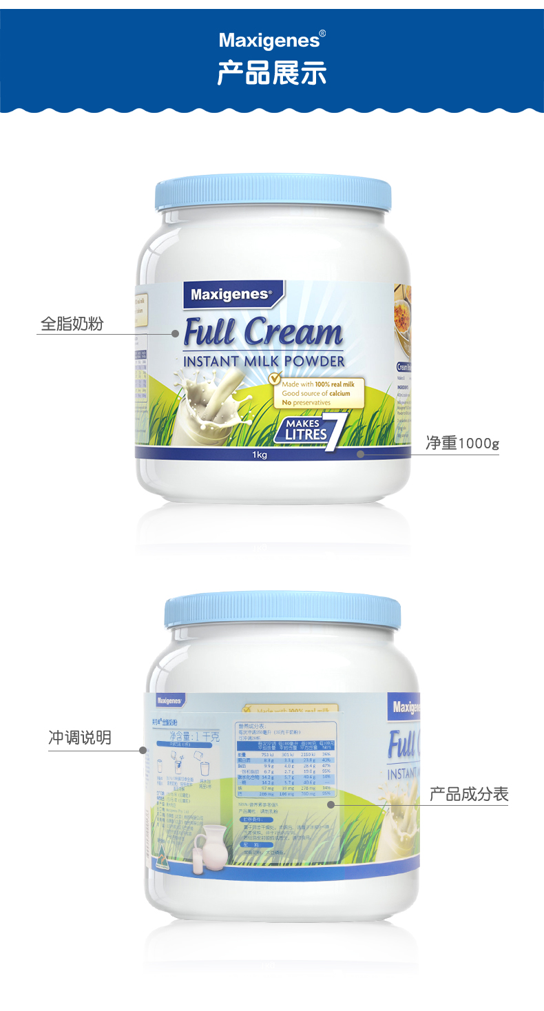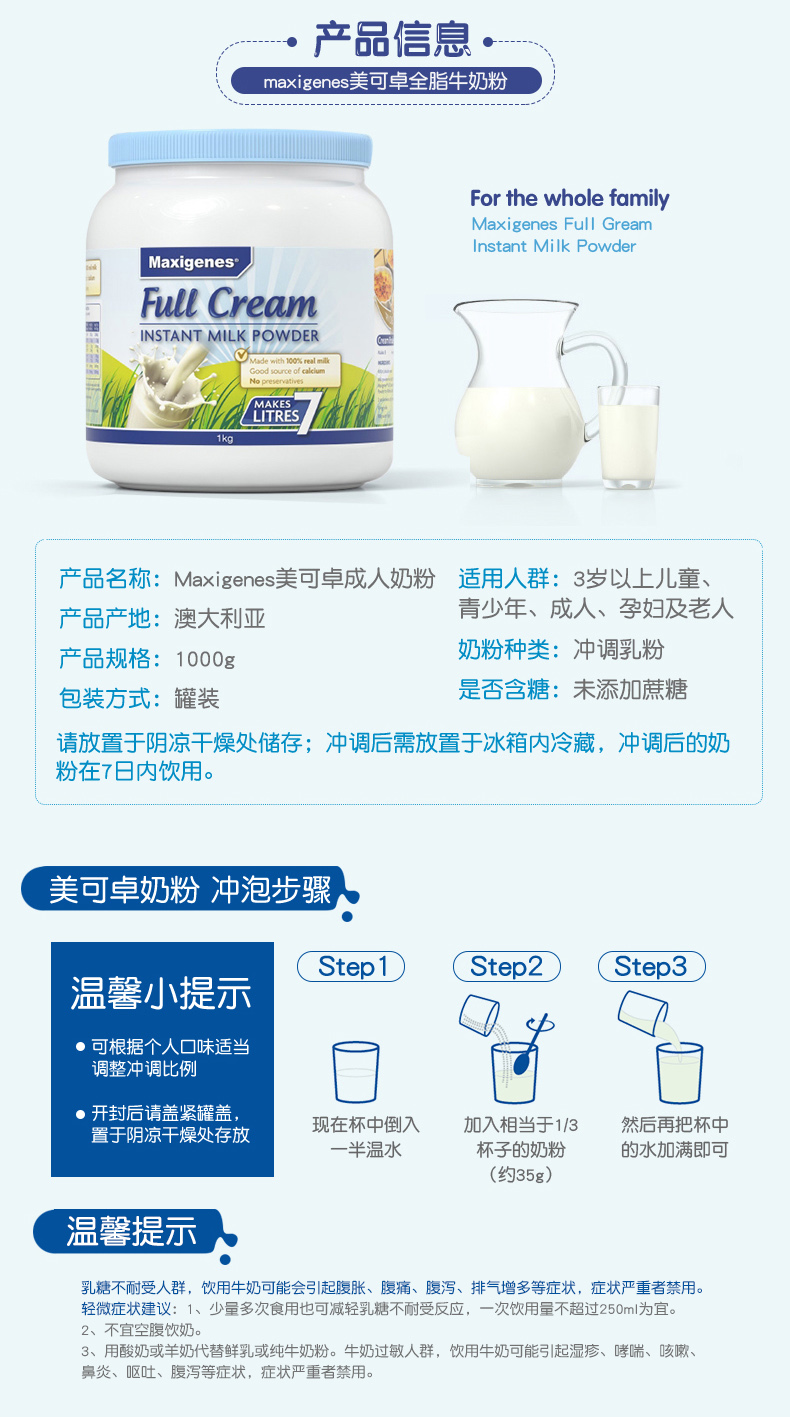 • 【澳洲仓】MAX美可卓(蓝胖子)全脂奶粉