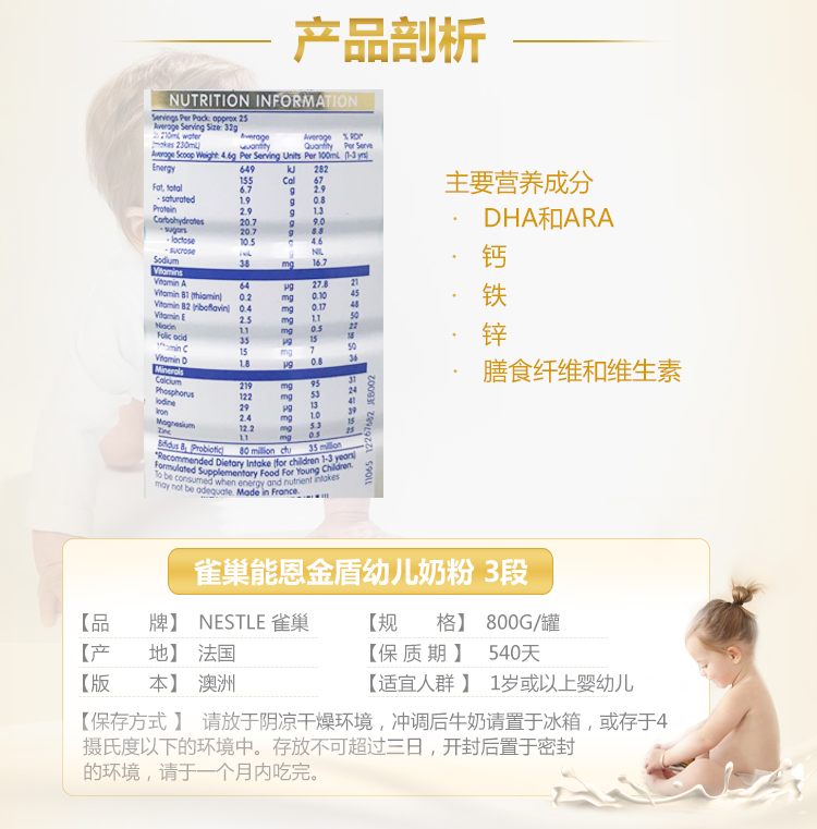 • 【澳洲仓】Nestle雀巢能恩NAN pro金盾3段婴儿奶粉800g