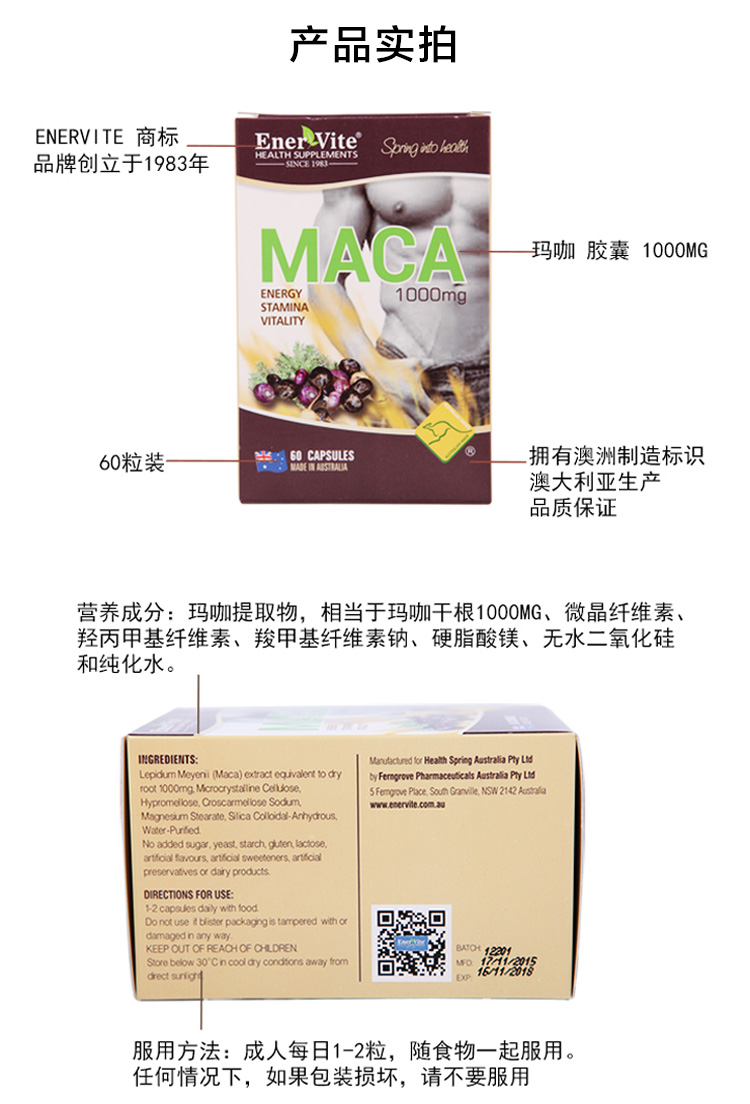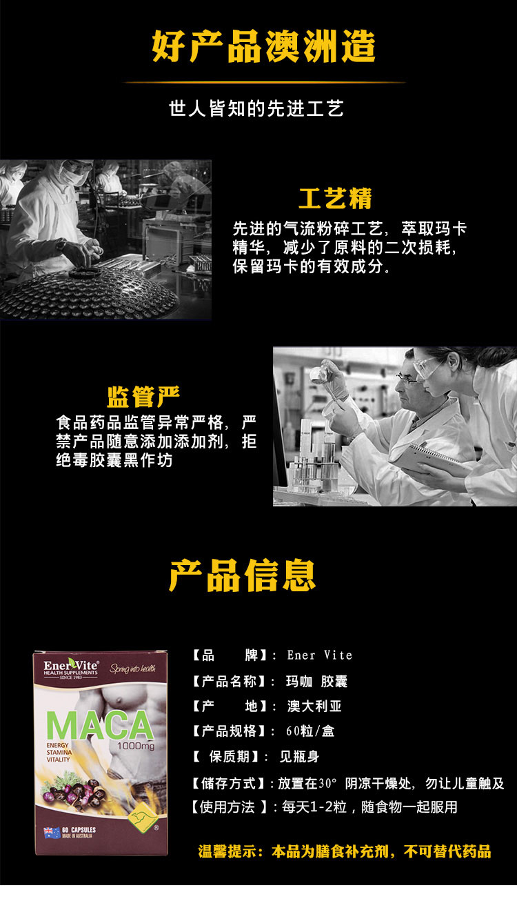 • 【澳洲仓】Enervite/澳乐维他 玛咖胶囊精片1000mg/60粒