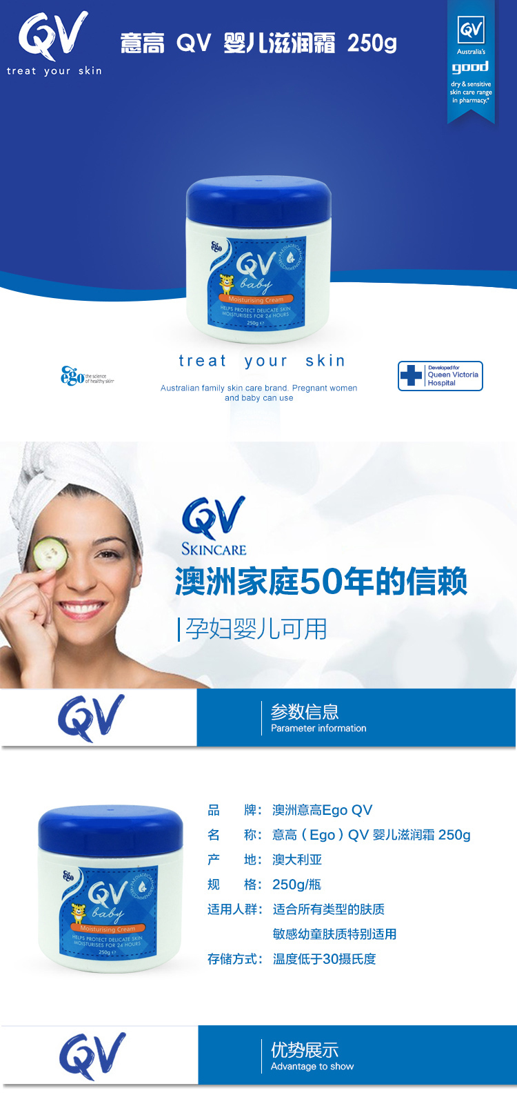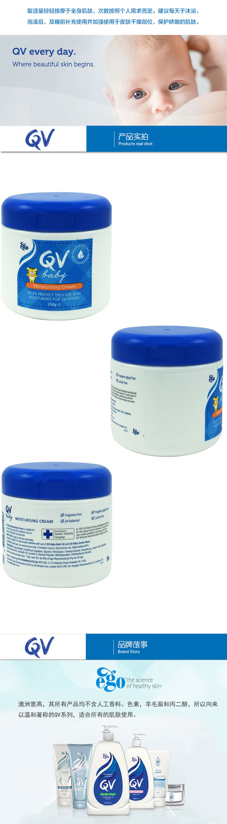【澳洲仓】Ego Qv婴儿油 小老虎 天然滋润保湿润肤霜 250G