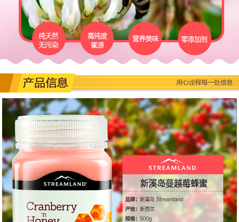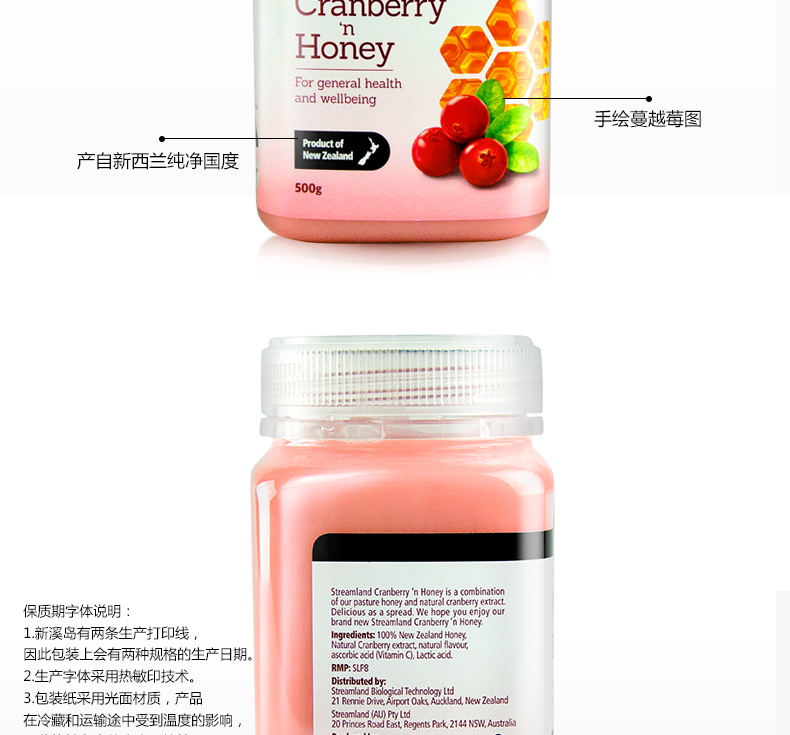• 【澳洲仓】【礼】【买一送一】STREAMLAND新溪岛 天然蔓越莓蜂蜜 500g
