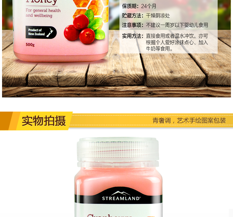 【澳洲仓】【礼】【买一送一】STREAMLAND新溪岛 天然蔓越莓蜂蜜 500g