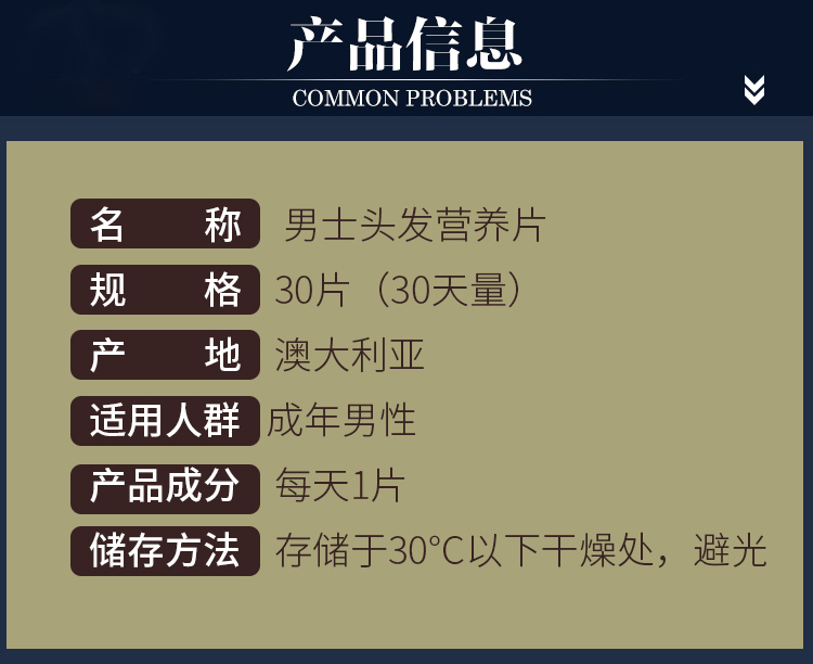 • 【澳洲仓】HDF 男性营养生发片 脂溢性防脱发速生发