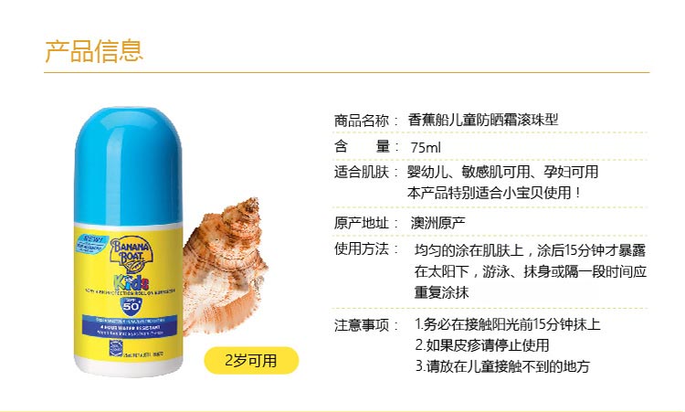 【澳洲仓】【特价】Banana Boat 香蕉船儿童(蓝色)防晒滚珠50+ 75ml