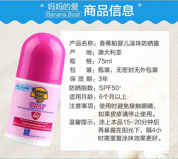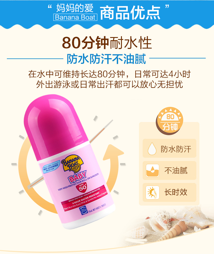 【澳洲仓】【特价】Banana Boat 香蕉船婴儿(粉色)防晒滚珠50+ 75ml