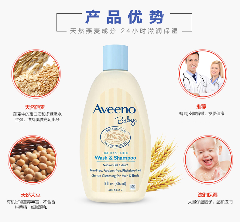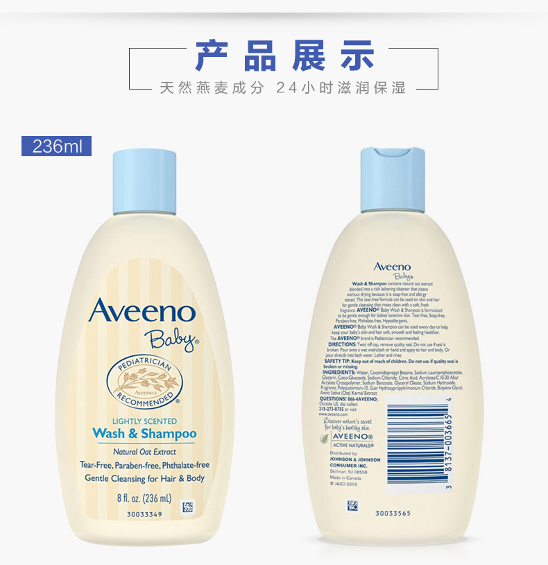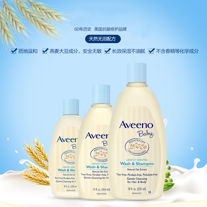 • 【澳洲仓】Aveeno Baby Wash & Shampoo 艾维诺婴儿、儿童天然燕麦洗沐浴液二合一 236ml