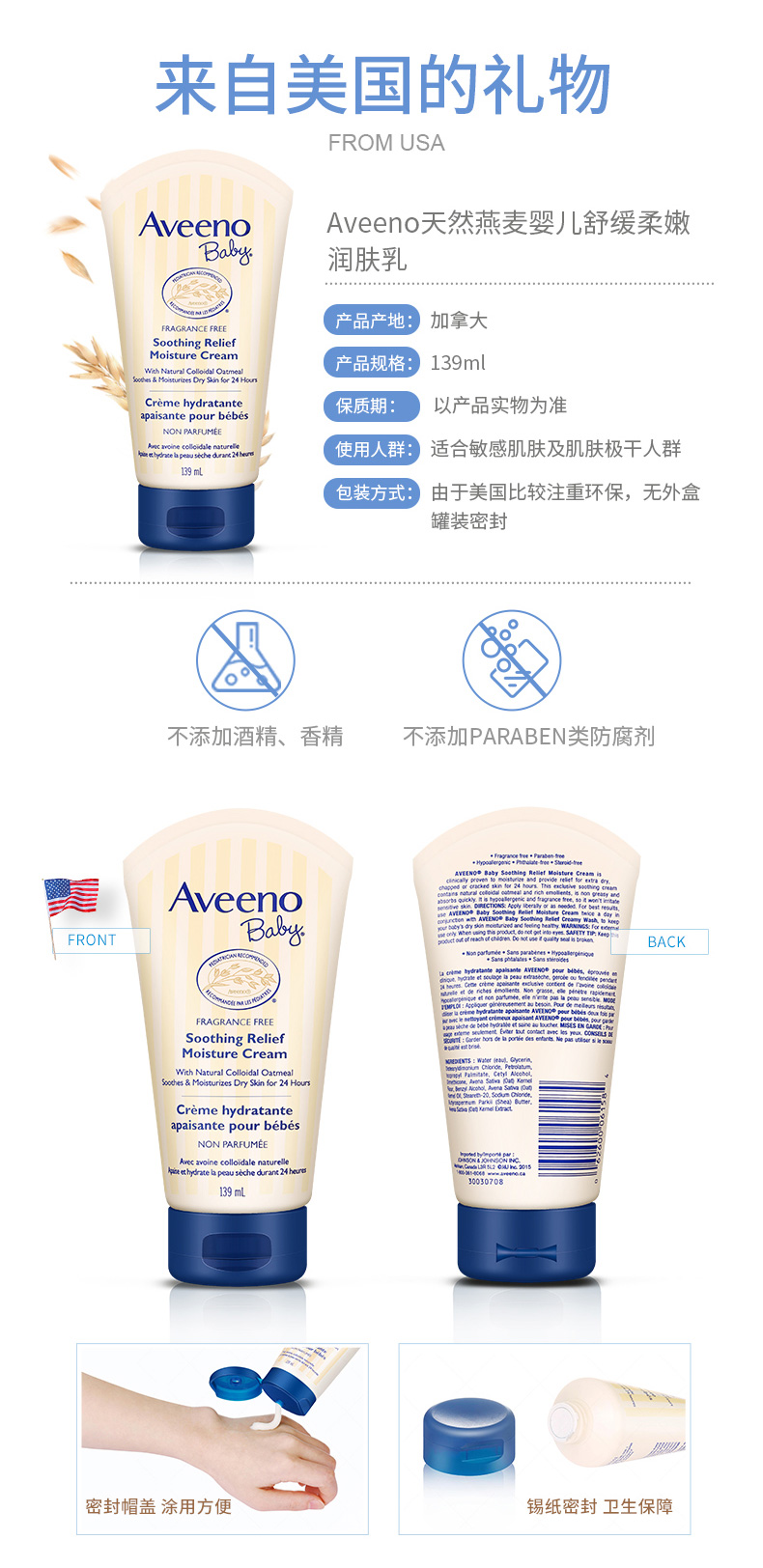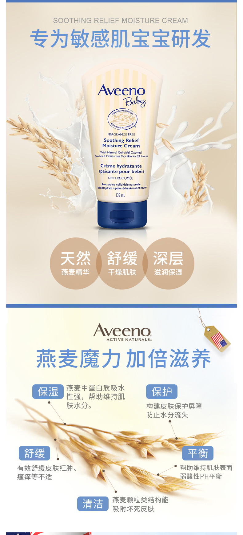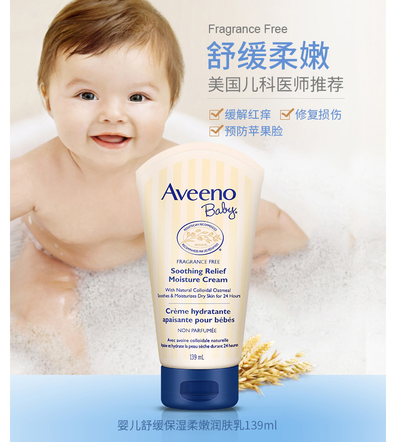 • 【澳洲仓】Aveeno Baby Soothing Relief Moisture Cream 艾维诺婴儿、儿童天然燕麦舒缓保湿润肤霜 139ml