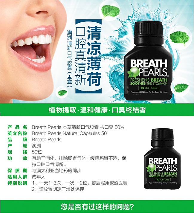 • 【澳洲仓】Breath珍珠香口丸50C 天然清新口气丸