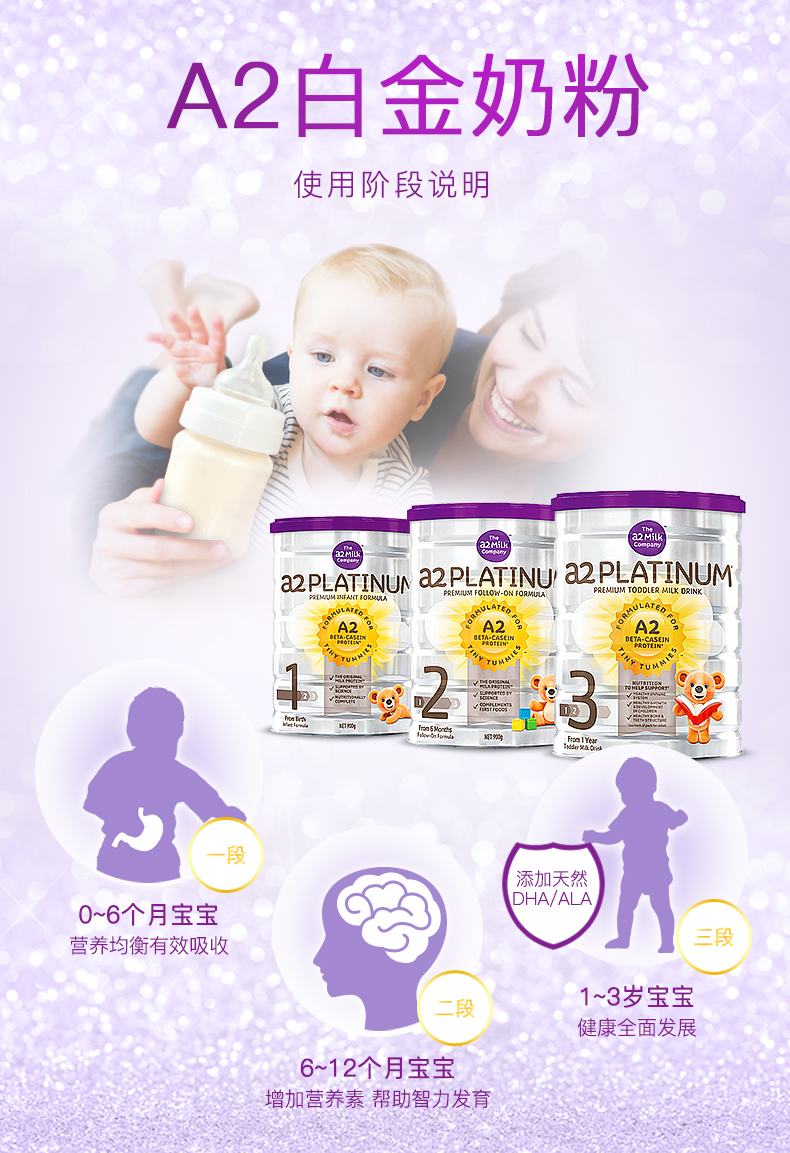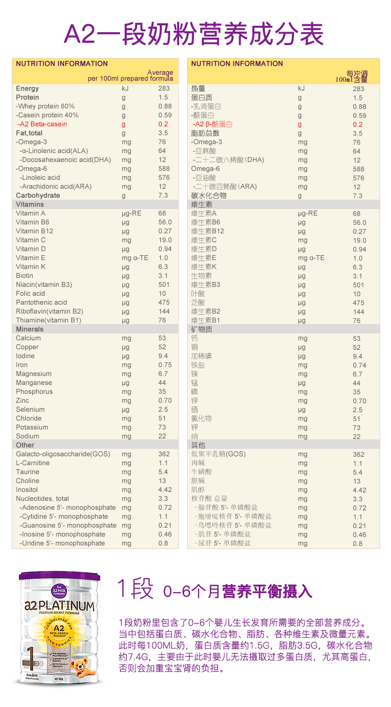 • 【澳洲仓】【3罐包邮】A2婴儿奶粉白金系列牛奶粉 1段