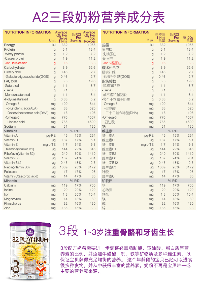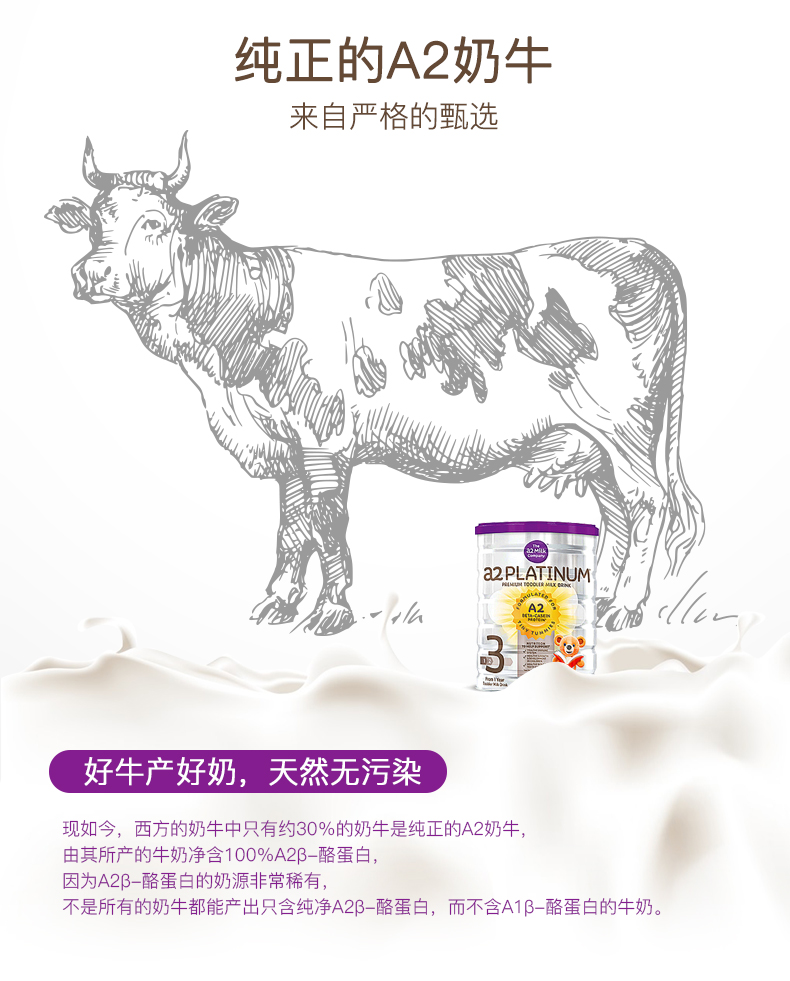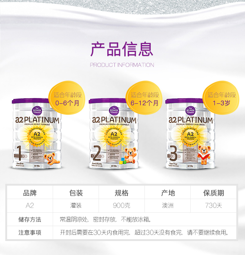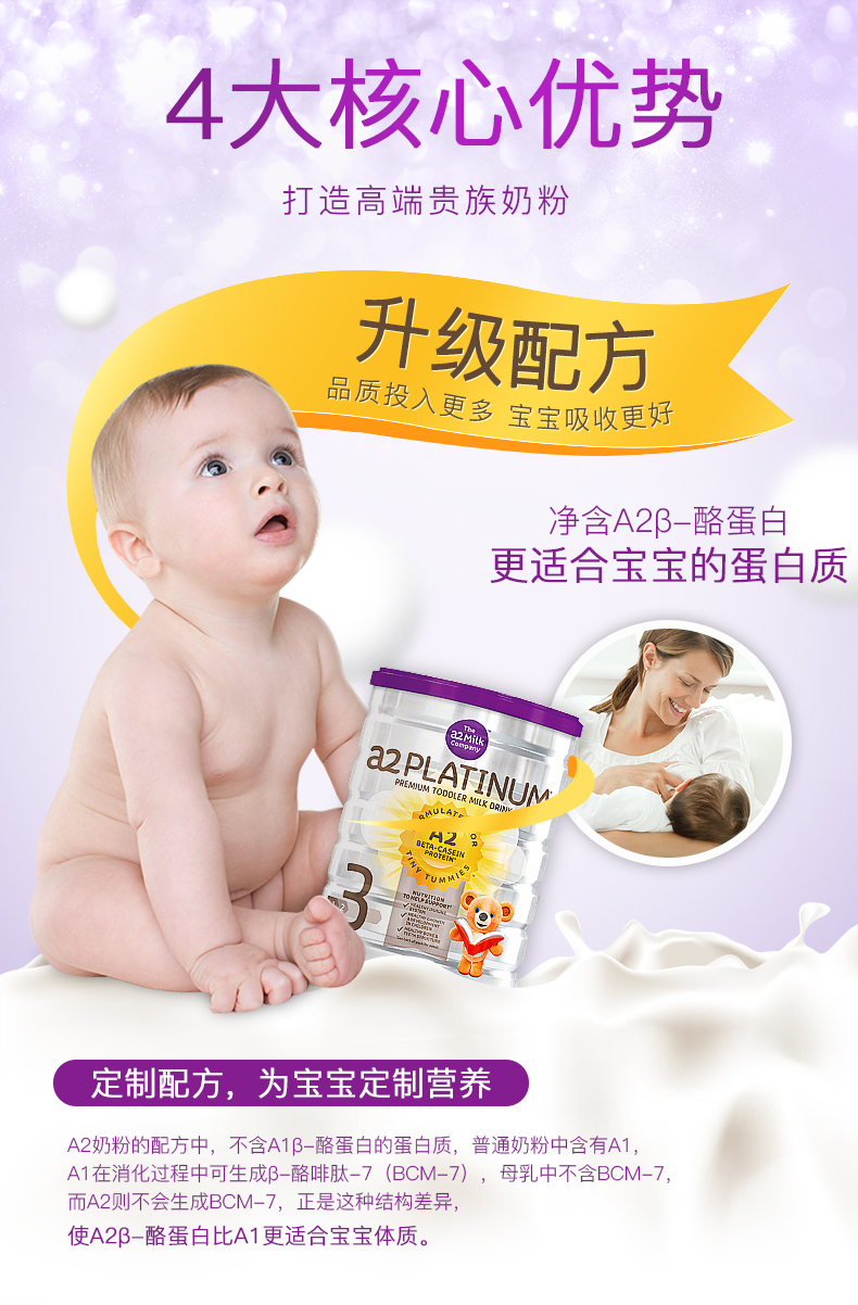 • 【澳洲仓】【3罐包邮】A2婴儿奶粉白金系列牛奶粉 3段