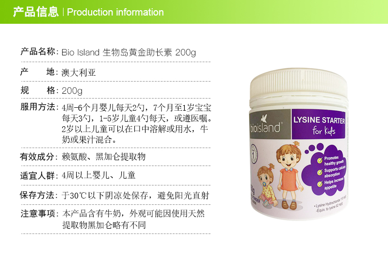 • 【澳洲仓】Bio Island生物岛黄金助长素 儿童成长素 1段150g
