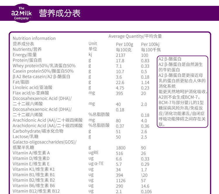 • 【澳洲仓】A2婴儿奶粉白金系列牛奶粉 1段