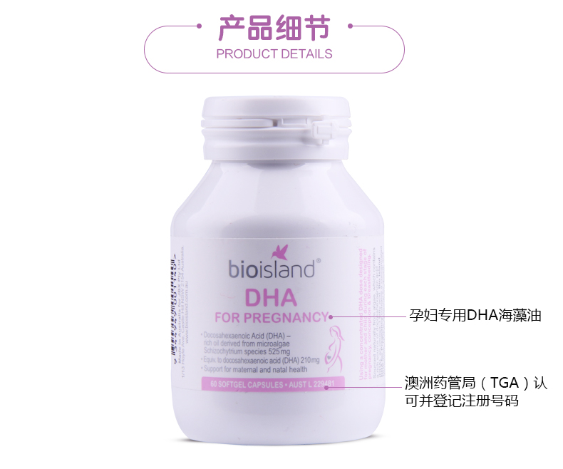 • 【澳洲仓】Bio Island 孕妇DHA海藻油营养维生素 哺乳期营养品成人 60粒