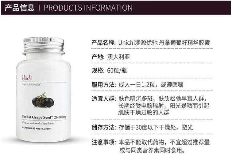 • 【澳洲仓】UNICHI TANNAT GRAPE SEED 26000MG 丹拿葡萄籽精华胶囊 60粒